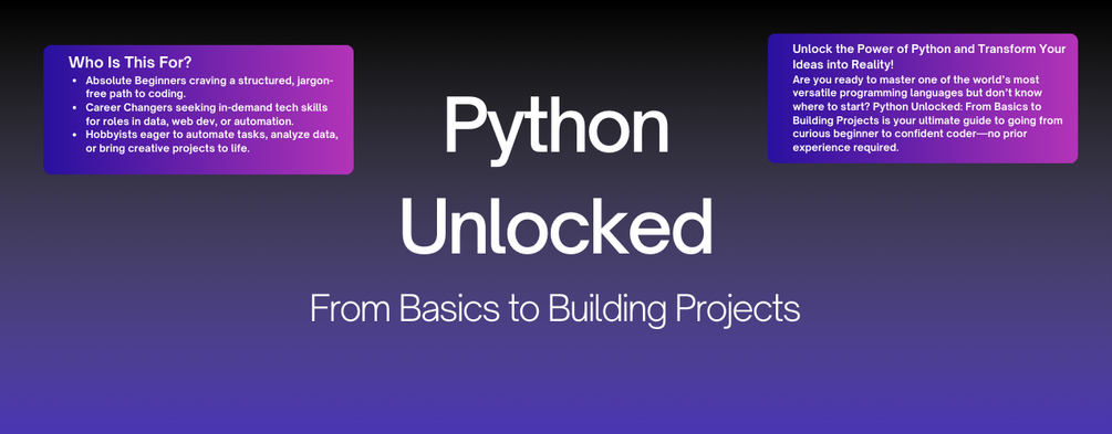 Are you ready to master one of the world’s most versatile programming languages but don’t know where to start? Python Unlocked: From Basics to Building Projects is your ultimate guide to going from curious beginner to confident coder—no prior experience required.