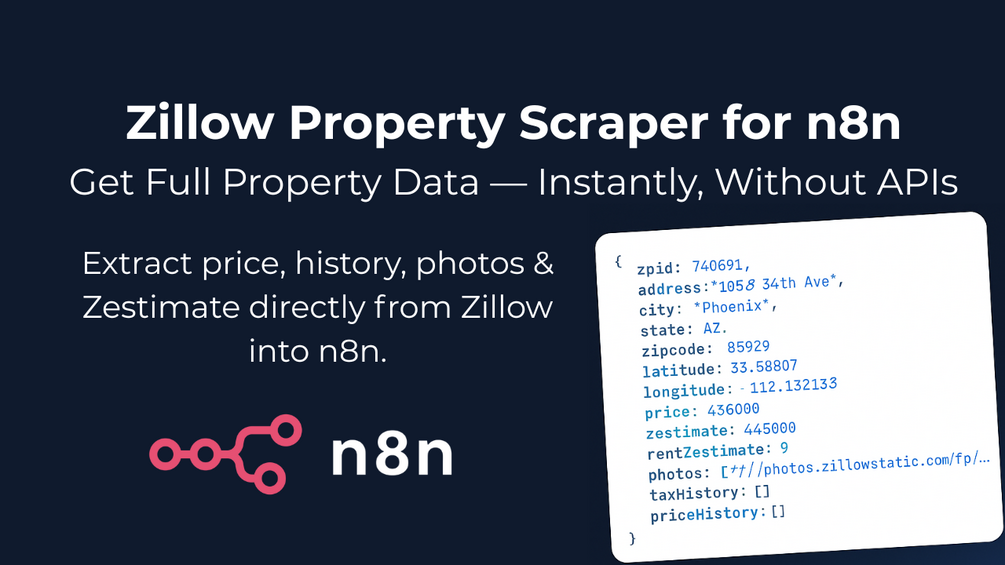 Unlock Zillow’s full property details directly inside n8n — no Apify, proxies, or browser automation needed.